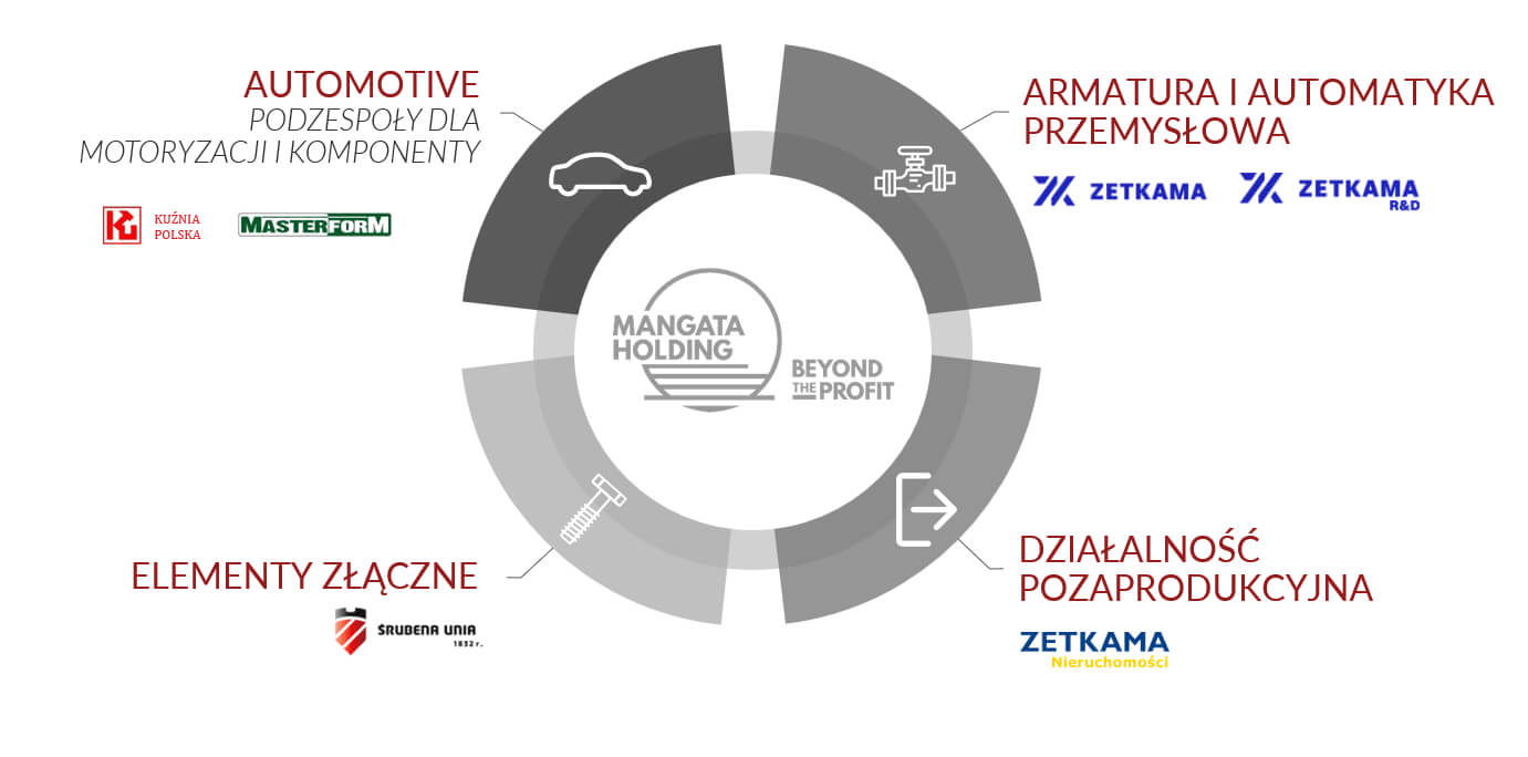 Pierwszy segment operacyjny obejmuje firmy, których produkcja w przeważającej mierze jest ukierunkowana na wytwarzanie elementów przemysłu motoryzacyjnego i skupia 2 podmioty: Kuźnię Polską S.A. oraz Masterform Sp. z o.o. Elementy produkowane w tych Spółkach trafiają więc bezpośrednio i pośrednio do większości samochodów osobowych produkowanych w Europie, a także w Meksyku i USA. Świadczy to o ich konkurencyjności cenowej oraz wykorzystaniu wysokiej wiedzy technologicznej w procesie produkcji. Duża część elementów jest również montowana w samochodach ciężarowych, traktorach i kombajnach. Firmy te świadczą również usługi obróbcze.